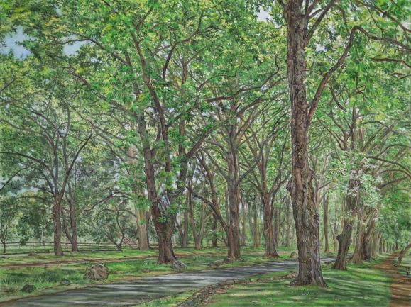 This is a fairly large series, which contains twelve canvases of various delightful nooks and cranies around Totara Park (in Manurewa). Mejun painted this over a period of two years from 2008 to 2010. They were displayed in an exhibition at the Visitors Centre of the Auckland Botanic Gardens spanning three weeks in September and October 2010.