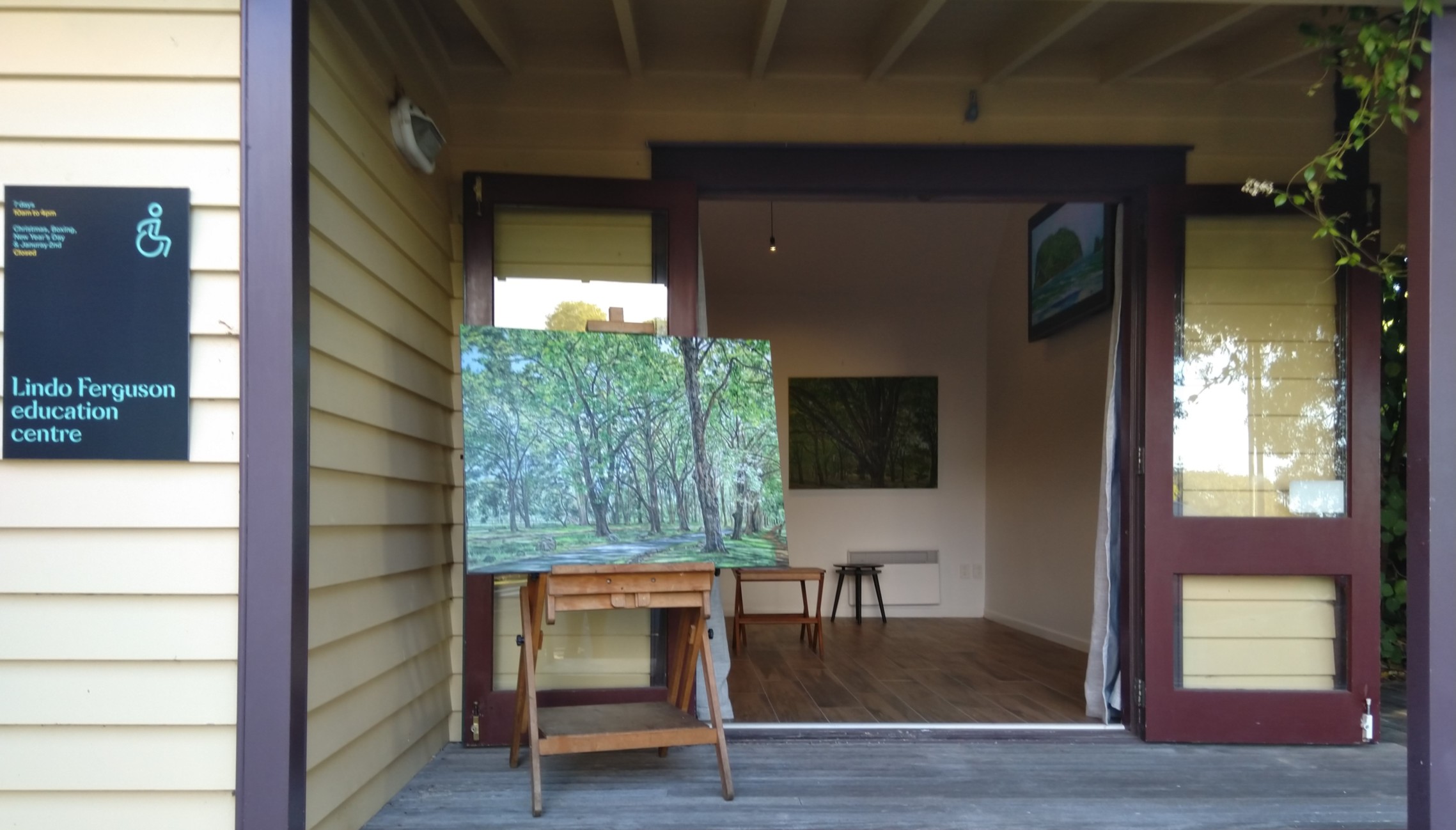 The works that Mejun painted in Cornwall Park over 2017 and 2018 (Twin Oak Drive in four seasons plus Daffodils, and Cherry Blossoms) were exhibited in the newly refurbished display room at the back of the Cornwall Park Visitors Centre for three weeks.