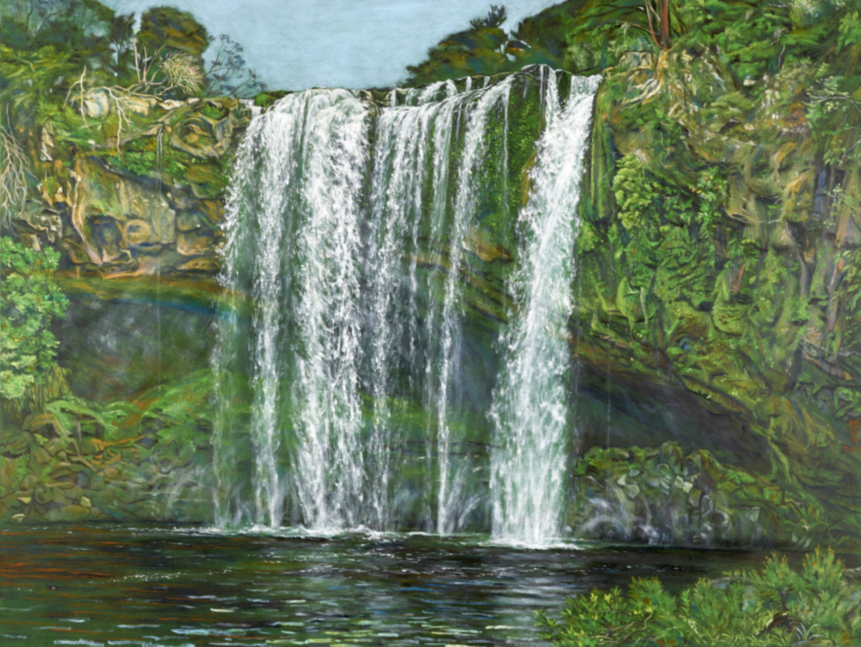 This year (when not in lock-down), Mejun has been painting a couple of waterfalls in South Auckland: Waitangi Falls (near Glenbrook) and the waterfall / cascade in Henry Reserve near Patumahoe. Like all her other landscapes, she has used oil on canvas as her medium. We hope to get high-resolution photos of these done in the near future, so they are also available for those who want either of these landscapes as prints on canvas.