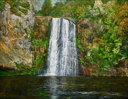 At the close of 2014, Mejun painted the Hunua Falls on a large canvas.