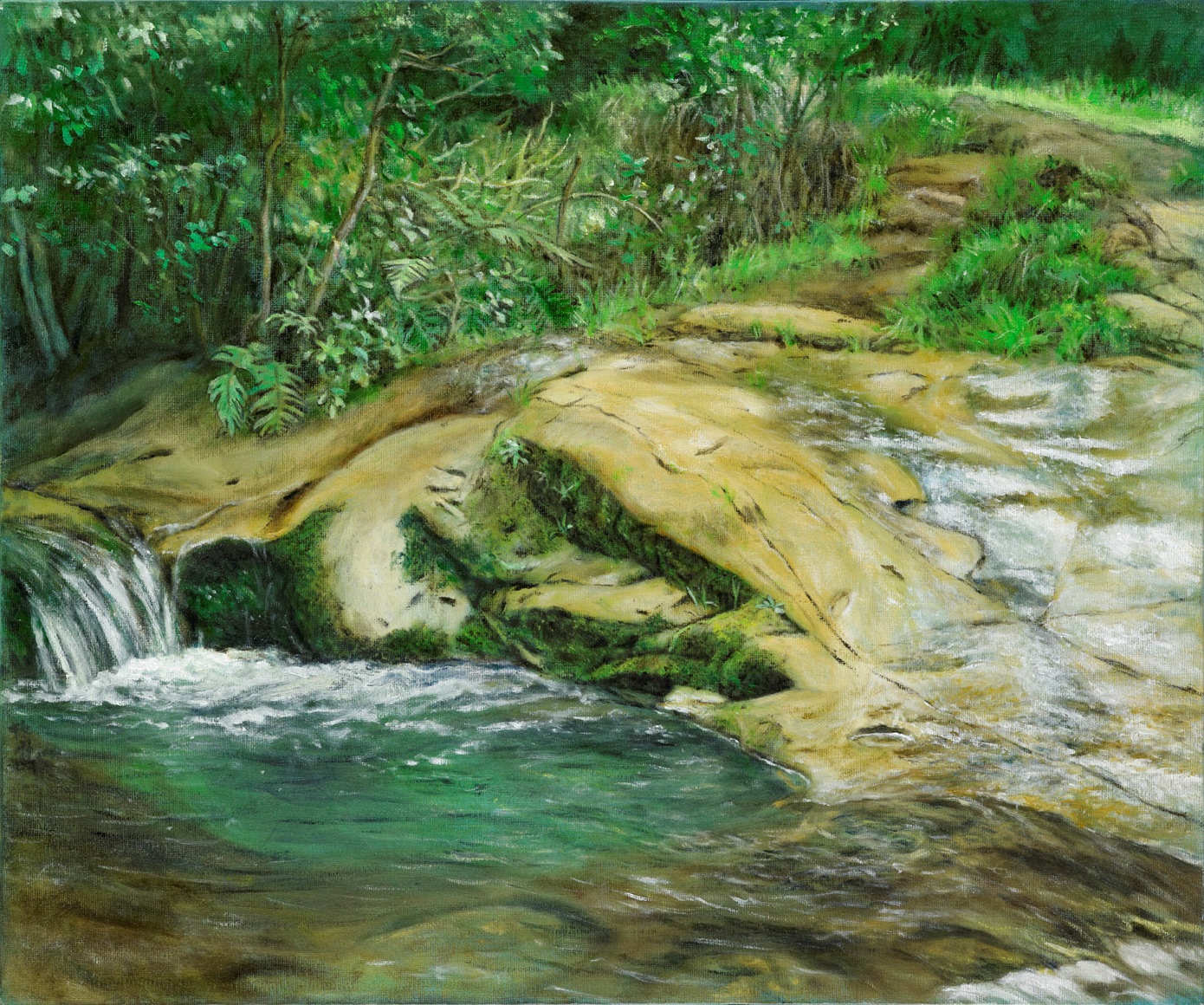 This was an exhibition of works that Mejun had done over the preceding 18 months, that captured 12 delightful views, nooks, and crannies around Totara Park - which is adjacent to the Auckland Botanic Gardens in Manurewa. Two of these paintings were included in Bruce Ringer's book Countryside in the City - A History of Totara Park Manurewa (publised by Auckland Communities Foundation in 2012 - on pages 2 and 55 and the back cover).